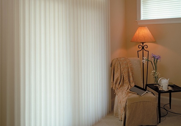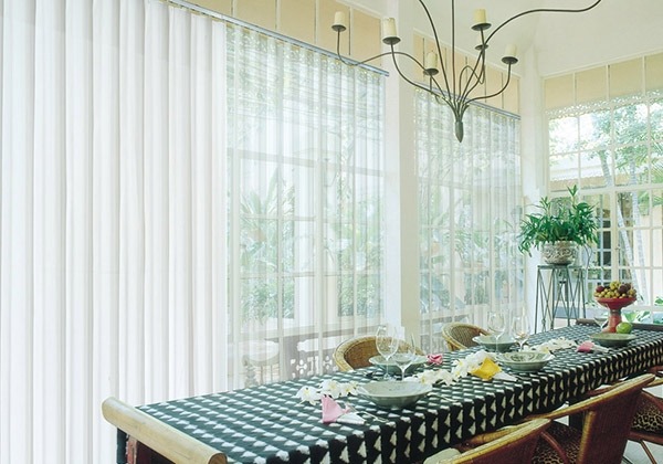 Tirai Vertical Sheer Blinds menggabungkan tirai vertikal tradisional dengan garis kain tipis yang menutupi fasad dan bagian belakang tirai secara alternatif, sehingga menghilangkan silau dari matahari.